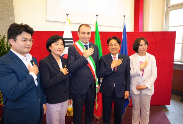 로 루쏘 시장도 “세월호 10주기 추모를 토리노시민들과 함께 하겠다는 의미를 담아 토리노시 배지를 강기정 시장께 달아드렸다”면서 “안전한 토리노를 실현할 수 있도록 힘쓰겠다”고 말했다.