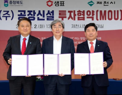 [뉴스서치] 제천시는 2일 제천시청에서 국가대표 식품기업인 샘표식품 주식회사와 제2산업단지 공장 신설 투자협약을 체결했다.