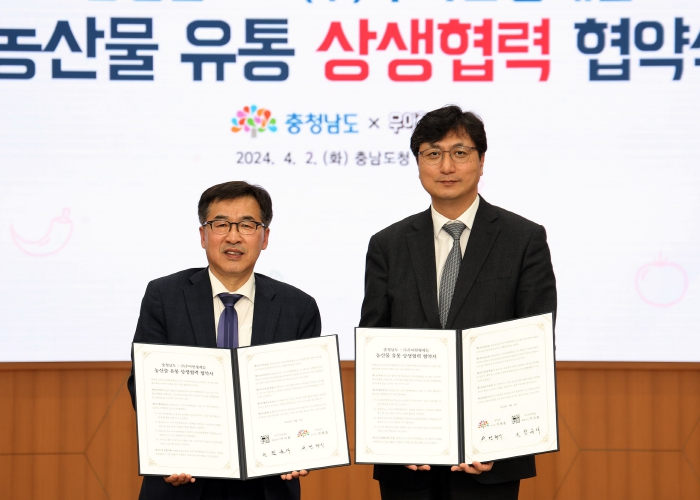 전형식 정무부지사는 2일 도청 대회의실에서 함윤식 우아한형제들 부사장과 충남 농산물 유통 활성화 및 판매 촉진을 위한 상생협력 업무협약을 체결했다.