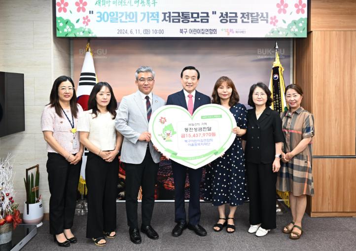 지난달 북구 어린이 큰잔치와 함께하는 행사로 '30일간의 기적' 동전저금통 모금이 진행돼 북구 지역 어린이집 98곳과 사회복지시설 7곳 아동들이 참여해 성금 1천543만7천970원을 모았다.