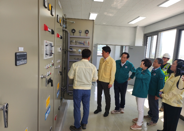 ▲ 최재훈 달성군수가 논공읍 금포리에 위치한 삼리배수장에서 배수시설 정상 작동 상태 여부 등을 확인 중이다. |