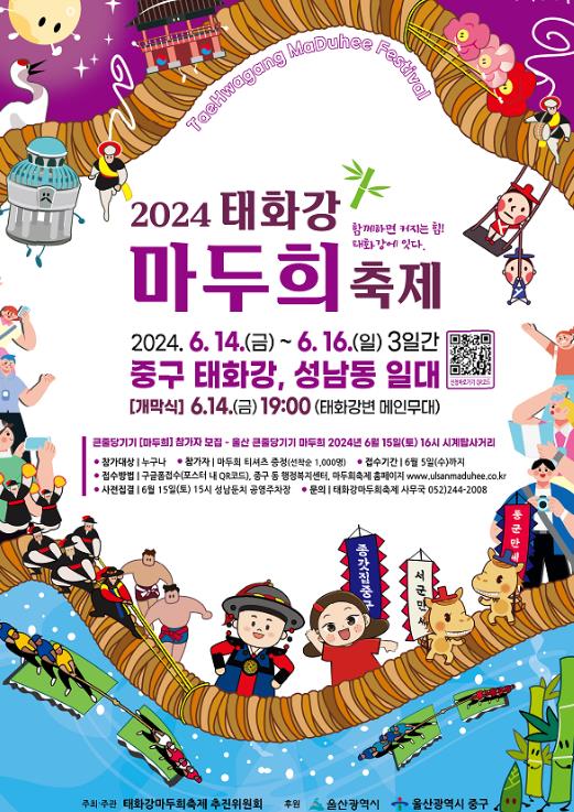 [뉴스서치] 2024 태화강마두희축제가 6월 14일부터 6월 16일까지 사흘 동안 중구 성남동 및 태화강변 일원에서 열린다.
