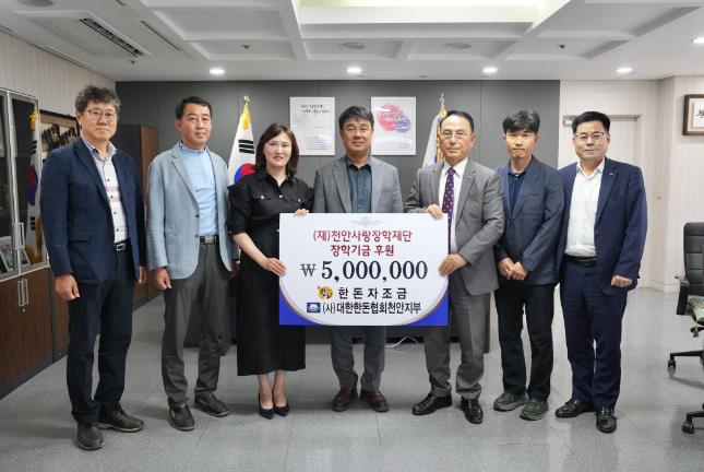 [뉴스서치] 사단법인 대한한돈협회 천안지부는 30일 지역인재 육성 및 어려운 학생을 위해 장학기금 500만 원을 (재)천안사랑장학재단에 기탁했다.