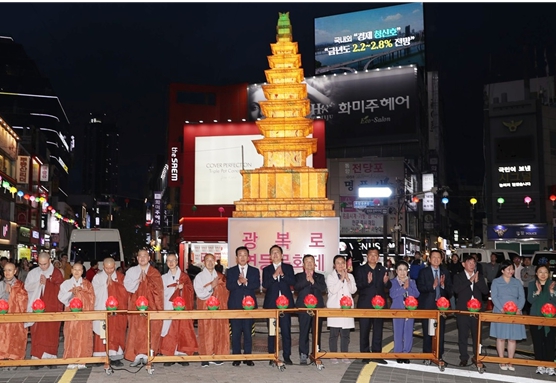 지난달 27일부터 거리연등과 탑평리 7층 석탑을 본뜬 장엄등을 중심으로 거리 전체에 오색연등이 화려한 상가 조명 사이에서도 은은한 빛을 발하며 광복로 일대를 봉축 분위기로 물들였으며 부처님오신날 다음날인 16일까지 광복로를 밝힐 예정이다.