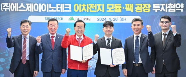 [뉴스서치] 대구광역시는 4월 30일 오후 4시 대구시청 산격청사에서 ㈜에스제이이노테크와 ‘이차전지 모듈 및 팩 제조시설’ 건립을 위한 투자협약을 체결했다.