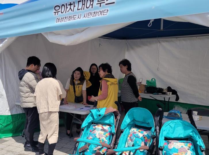 [뉴스서치] 양산시 여성친화도시 제5기 시민참여단(단장 양성희)은 "물금벚꽃축제"행사장을 찾은 가족단위 관람객이 행사를 즐길 수 있도록 지난달 30일과 31일 양일간 행사 기간 내 유아차 대여 부스를 운영했다.