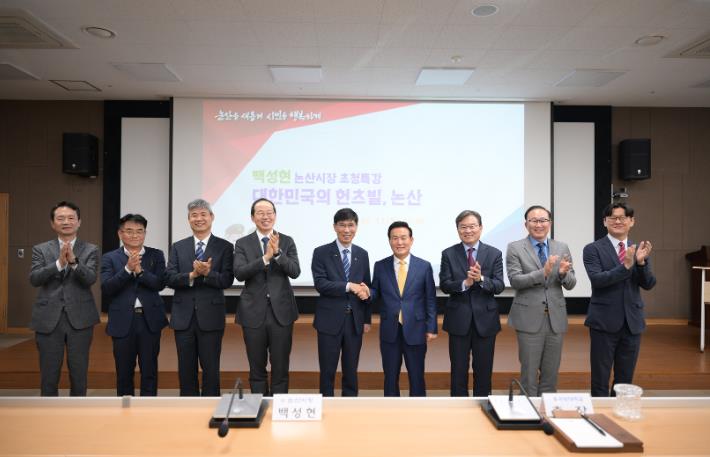 이번 특강에는 국방대학교 교수 및 교직원 등 100여 명이 참석했으며, 논산시가 국방군수산업의 도시로서 가진 잠재력과 미래 성장 동력, 비전에 대한 내용으로 진행됐다.