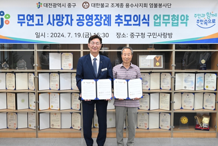 한편 중구는 올해부터 충남대학교병원 장례식장, 대전성모병원 장례식장, 시민장례식장과 협약을 맺고 무연고사망자를 위한 공영장례의식을 지원하고 있다.