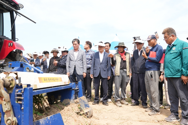 이번 연시회는 마늘 재배에서 가장 많은 일손이 소요되는 수확 작업을 기계화 현장 시연을 통해 안정적인 기계화 수확 기술 보급을 위해 마련됐다.