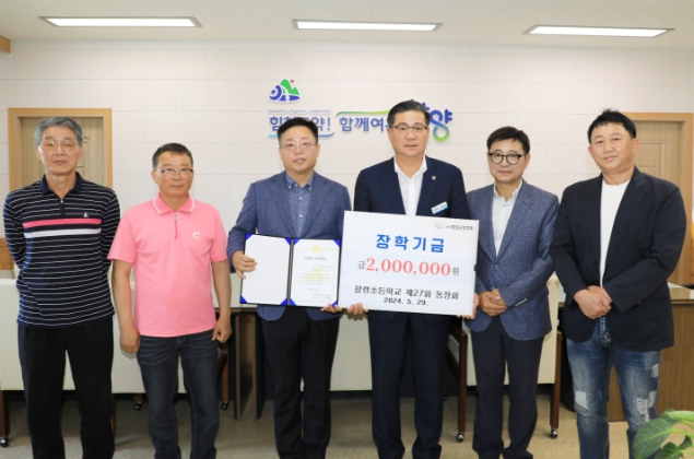 이날 팔령초등학교 제27회 동창회 김봉현 회장 등 회원 5명도 함양군을 방문하여 “후배들의 학업지원에 조금이나마 도움이 되고 관내 학생들이 자신의 꿈을 향해 열심히 노력하기를 바란다”라며 장학금을 기탁했다.