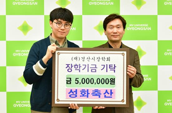 [뉴스서치] (재)경산시장학회는 성화축산이 시청을 방문해 인재 육성을 위한 장학금 5백만원을 기탁했다고 30일 밝혔다.