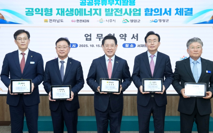 [뉴스서치] 전라남도는 15일 새정부의 재생에너지 대전환 기조와 재생에너지 보급 확대 정책에 따라 나주시, 영광군, 영암군, 한전KDN과 탄소중립 실현·에너지 기본소득 실현을 위한 ‘공익형 재생에너지 발전사업’ 업무협약을 했다고 밝혔다.