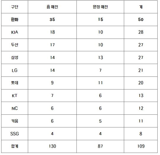 20일 대전 KIA전에서 35번째 매진을 기록한 한화는 20일 기준 홈 경기 49경기 중 35경기가 매진돼 약 71.4%의 매진율을 기록 중이다.