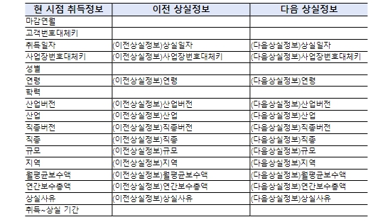 ▲ 고용보험 취득자를 기준으로 이전 상실정보와 다음 상실정보 연결 |