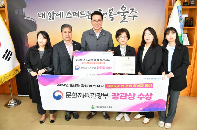 [뉴스서치] 울산시 울주군이 ‘2024년 도서관 육성 발전 유공’ 작은도서관 운영 활성화 분야에서 문화체육관광부 장관상을 수상했다고 16일 밝혔다.