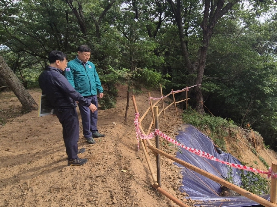▲ 김종훈 동구청장은 17일 관계공무원과 함께 염포산 등산로 일원 등을 방문해 여름철 집중호우 및 태풍 등 자연재난 대비 현장을 점검하고 있다. |