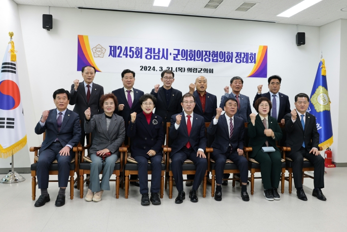 [뉴스서치] 제245회 경남시·군의회의장협의회 정례회가 지난 21일 경남 18개 시ㆍ군의회 의장과 오태완 의령군수, 의령군의회 의원 등 80여 명이 참석한 가운데 의령군 의령읍에 있는 경상남도교육청 미래교육원 회의실에서 개최됐다.