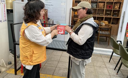 ▲ 재난 취약계층(노인·어린이·장애인 등) 대상 화재 대피용 구조 손수건 배부 |