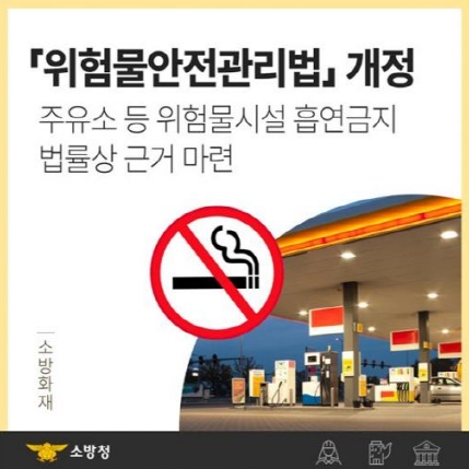 또한 관계인의 금연구역 알림표지 설치 의무화 및 미설치시 시정 명령근거가 마련됨에 따라 주유소 등 위험물 저장·취급 시설의 이용객은 물론 관계인들의 각별한 주의를 당부했다.
