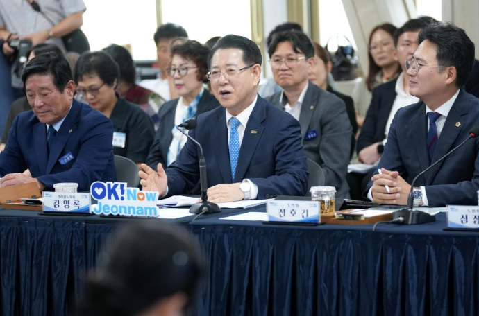현장에서 접수된 쪽지 건의에 대해 김영록 지사가 직접 응답하며 도민과의 진정성 있는 소통에 나섰고, 정책토론 이후에는 참석자 전원이 함께하는 드론 기념촬영도 진행돼 눈길을 끌었다.