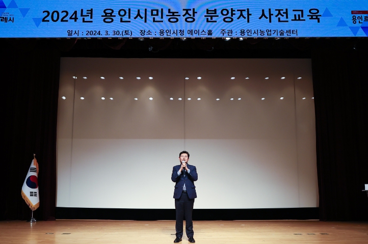 ▲ 이상일 용인특례시장이 30일 용인시민농장 사전교육행사에서 인사말을 하고 있다. |