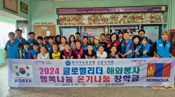 [뉴스서치] 한국자유총연맹 고양시지회는 6월 27일(현지시간) 몽골 울란바토르 인근에 있는 호몽 고등학교를 찾아 학생 10명에게 총 2,000달러의 장학금을 전달했다.