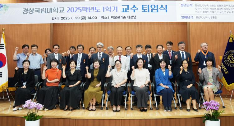 [뉴스서치] 경상국립대학교는 8월 29일 오후 2시 가좌캠퍼스 박물관 1층 대강당에서 2025학년도 1학기 교수 퇴임식을 개최했다.