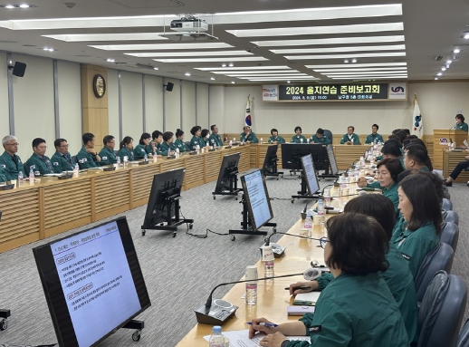 이날 보고회는 을지연습에 앞서 사전 준비태세를 최종적으로 점검하는 자리로 19일부터 22일까지 3박4일간 실시되는 2024년 을지연습에 대한 총괄 준비 상황과 부서별 중점 점검사항, 과년도 문제점 및 개선사항에 대한 보고 등으로 진행됐다.