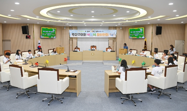 ‘광산구의회 어린이 모의의회’는 관내 초·중학생들에게 지방의회 의사결정 과정의 체험 기회를 제공함으로써 민주주의에 대한 이해도를 높이고 성숙한 시민의식을 함양하도록 돕는 프로그램으로, 매년 2회씩 운영되고 있다.