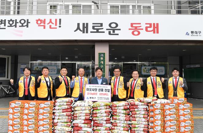 [뉴스서치] 부산 동래구는 지난 22일 국제라이온스협회 355-A(부산) 동문라이온스클럽으로부터 지역의 어려운 이웃을 위한 백미 10kg 50포와 라면 50박스를 기탁받았다고 밝혔다.