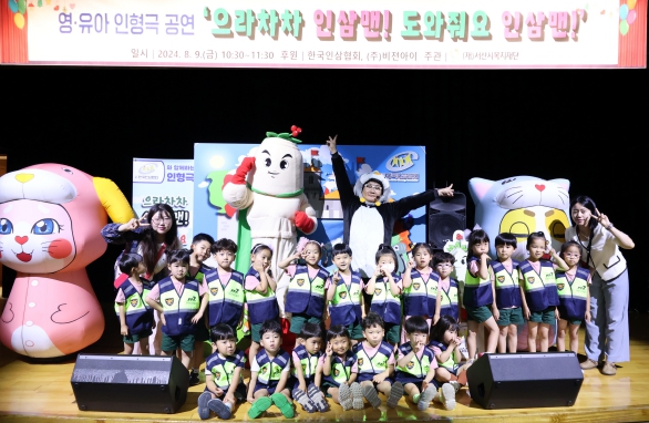 [뉴스서치] (재)서산시복지재단은 8월 9일, 관내 영·유아 169명을 대상 으로 ‘으라차차 인삼맨! 도와줘요 인삼맨’ 인형극 공연을 진행했다고 밝혔다.