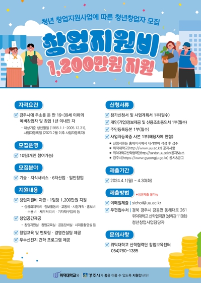 [뉴스서치] 경주시가 ‘2024년 청년창업 지원사업’에 참여할 청년창업자 10팀을 4월 1일부터 30일까지 모집한다.