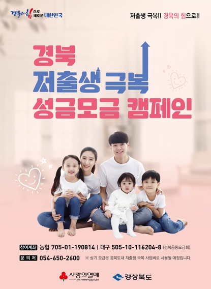 이번 캠페인은 올 11월까지 진행되며, 캠페인을 통해 모금된 성금은 출산용품 지원, 난임부부 시술비 본인부담금 지원 등 저출생 극복과 출산 장려를 위한 다양한 사업비로 적극 활용될 예정이다.