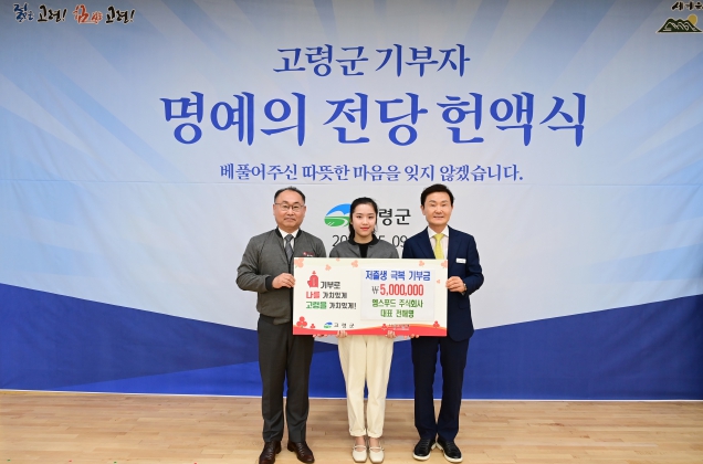 고령군은 “고령군의 발전에 많은 관심을 가져주셔서 감사드리고, 기탁하신 소중한 성금은 저출생 극복을 위한 사업에 잘 쓰여질 수 있도록 하겠다. 앞으로도 많은 격려와 응원을 부탁드린다”라고 말했다.
