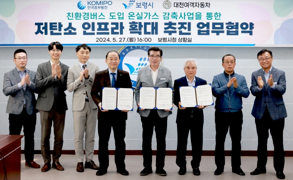 시는 친환경 대중교통 활성화로 탄소중립도시 실현에 기여하고, 온실가스 감축 사업을 통한 지속 가능한 사회가치 창출을 위해 이번 협약을 추진했으며, 앞으로 대천여객자동차에 친환경 버스 도입을 지원해 온실가스 배출권을 확보하고, 나아가 배출권 구매 대금 일부를 활용해 공유자전거 인프라를 확대해 나갈 계획이다.