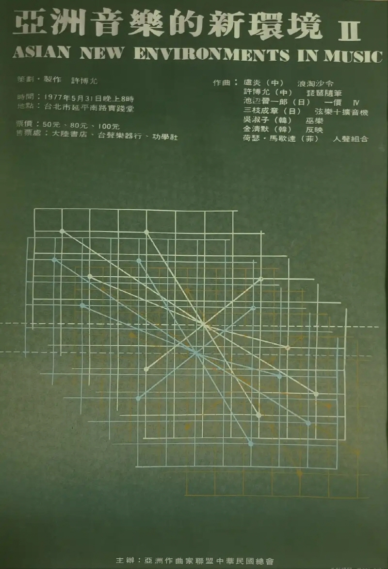 1980.03. 자유중국 대만 주체'음악적신환경' 위촉 "피아노와 타악기를 위한 무악"(중국 기자들이 공항에 나와 오숙자 작곡가를 취재했으며 대만 중앙일보 에 작곡가의 사진과 기사가 크게기재됐고 대만 TV 스튜디오에서도 연주하고 출연도했고 그리고 당시 대만 총통 관저에 초대되기도 했다)