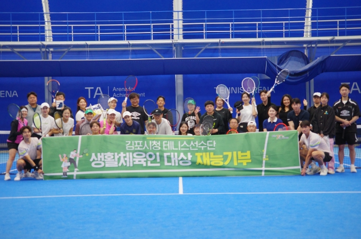 [뉴스서치] 김포시는 직장운동경기부 테니스선수단이 지난주 테니스 아레나 회원을 대상으로 재능나눔 무료강습을 실시했다고 밝혔다.