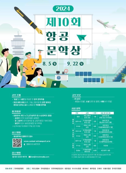 [뉴스서치] 국토교통부와 한국항공협회는 “제10회 항공문학상 공모”를 실시한다.