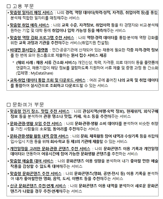 ▲ 고용, 문화·여가 마이데이터 서비스 예시 |