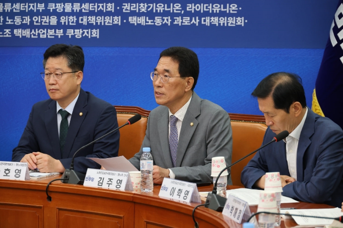 [뉴스서치] 더불어민주당 환경노동위원회와 노동존중실천 국회의원단(단장 서영교‧부단장 김주영)이 24일 오전 국회 더불어민주당 당대표 회의실에서 ‘산재 보호 사각지대 처한 쿠팡노동자, 어떻게 지킬 것인가 - 쿠팡노동자의 생명과 안전을 위한 집담회’를 주최했다.