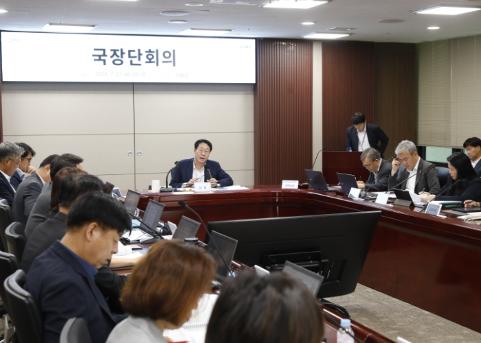 이날 국장단회의에서는 정명근 화성시장을 비롯해 실국소장 등 30여 명의 간부공무원이 참석해 각 분야별 신규 과제를 공유하고 시민이 만족할 수 있는 더 나은 시정 성과를 만들기 위한 회의가 진행됐다.