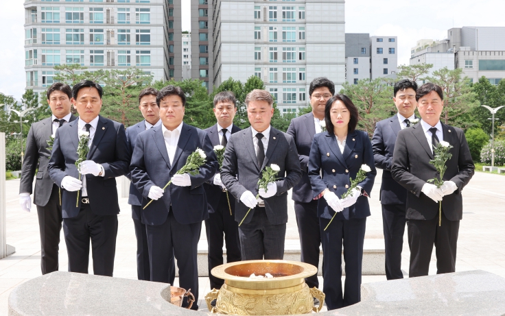 김정호 대표의원(광명1)을 비롯한 대표단은 24일 수원시 인계동에 위치한 현충탑을 찾아 헌화하며 순국선열과 호국영령들의 희생을 기리고, 경기도와 도민을 위한 힘찬 행보를 다짐했다.