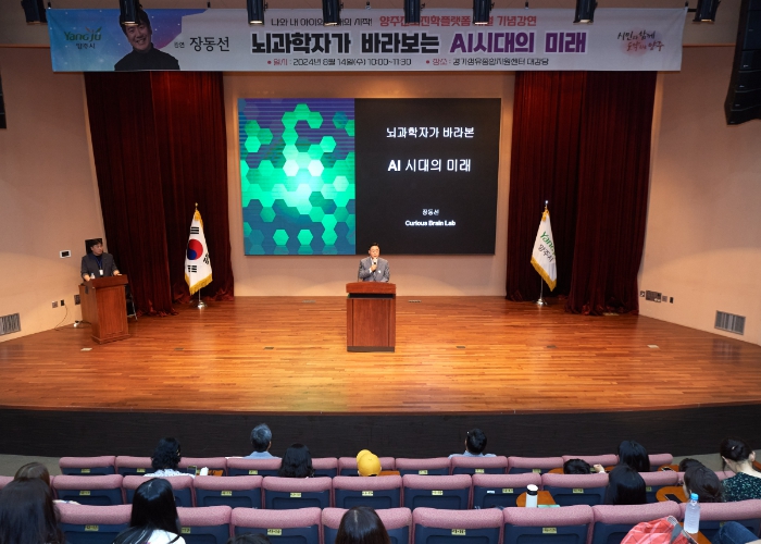 [뉴스서치] 양주시가 19일 오전 경기섬유종합지원센터에서 초청 강사 뇌과학자 장동선 박사의 ‘뇌과학자가 바라보는 AI시대의 미래’를 주제로 한 특강을 개최했다고 밝혔다.