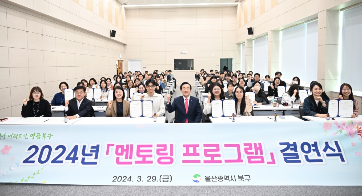 [뉴스서치] 울산 북구는 29일 평생학습관에서 신규공무원과 선배공무원의 멘토링 프로그램 멘티-멘토 결연식을 가졌다.
