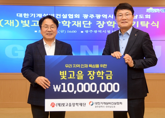 [뉴스서치] (재)빛고을장학재단은 29일 시청 비즈니스룸에서 대한기계설비건설협회 광주광역시·전라남도회가 빛고을장학금 1000만원을 기탁했다고 밝혔다.