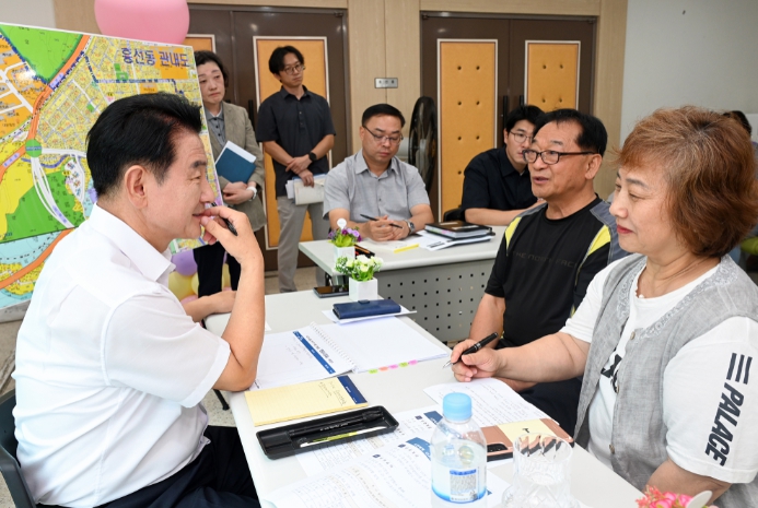 ▲ 김동근 시장이 8월 2일 흥선동행정복지센터에서 ‘현장시장실’을 열고 주민들과 소통하고 있다. |