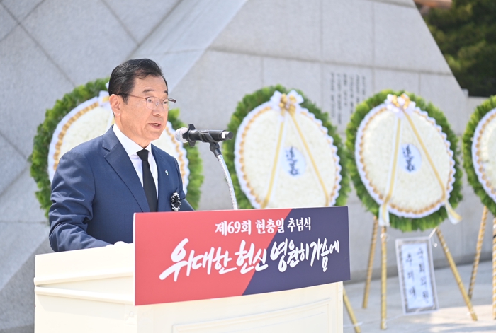 [뉴스서치] 이현재 하남시장은 6일 검단산 현충탑에서 열린 ‘제69회 현충일 추념식’에서 “조국을 위해 온몸을 던지신 순군선열과 호국영령이 존경받고, 그 후손들이 명예와 긍지를 갖고 살아갈 수 있도록 예우하겠다”라고 말했다.