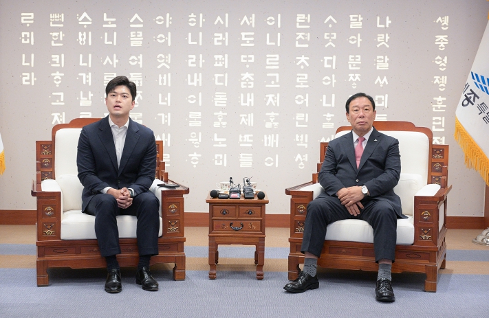최민호 시장은 25일 시청 세종실에서 김용태 위원장과 만나 해수부 부산 이전이 행정수도의 출범 취지에 역행하고 있다는 사실을 강조했다.