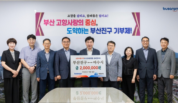 [뉴스서치] 부산진구와 여수시는 고향을 사랑하는 직원들의 기부를 시작으로 두 도시 간의 상호발전을 응원하기 위해 고향사랑기부금 200만원을 상호기부하는 기탁식을 가졌다.