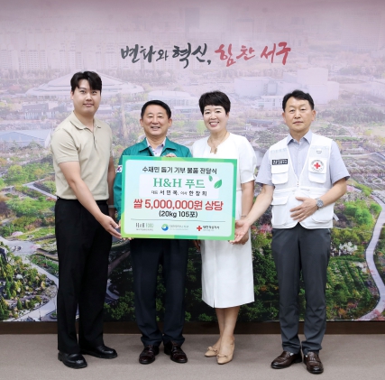 [뉴스서치] 대전 서구는 2일 서구체육회 부회장인 H&H푸드로부터 500만 원 상당의 이웃돕기 사랑의 쌀을 기탁받았다.